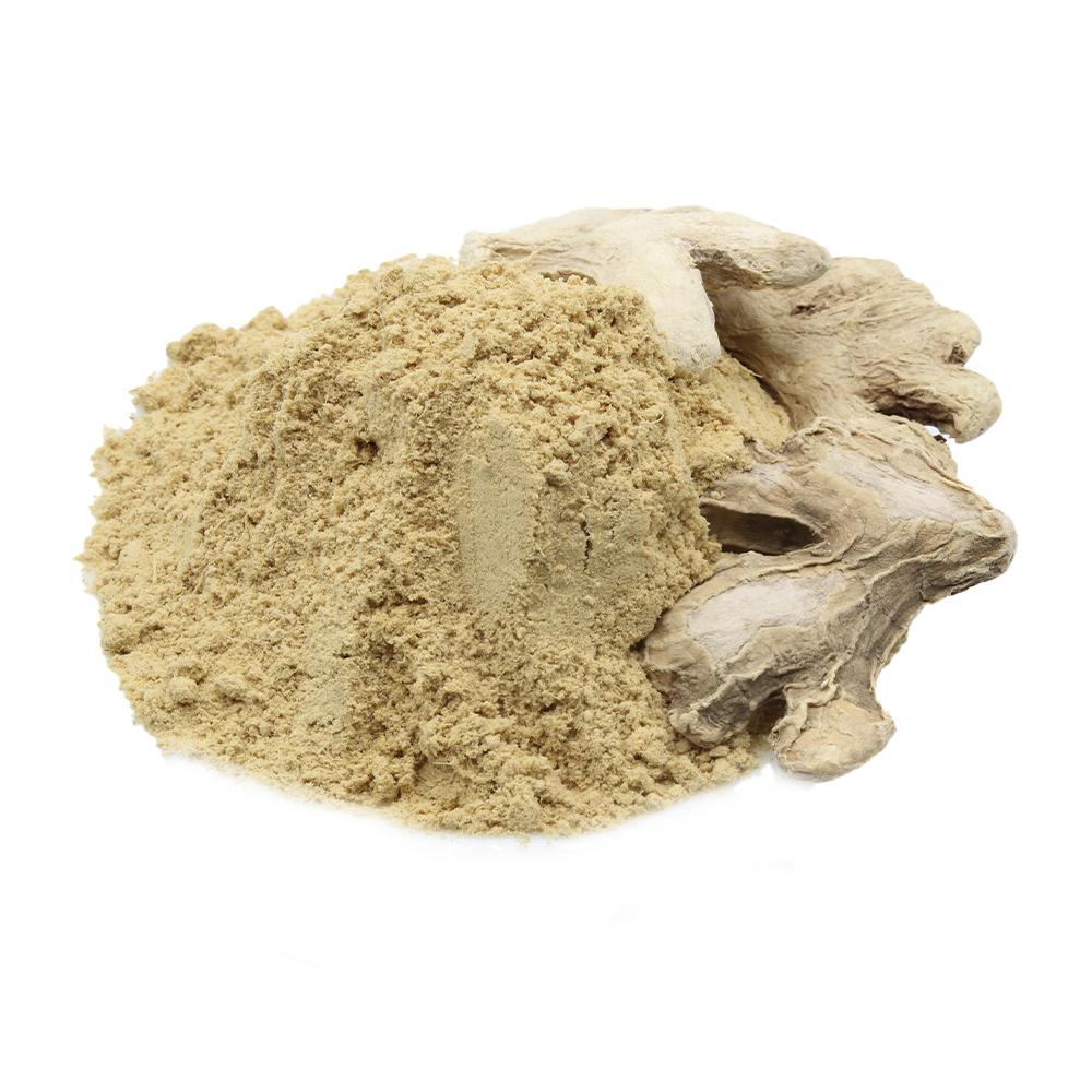 - زنجبيل مجفف طبيعي من الجذمور وهو الجزء الطبي المستعمل من الزنجبيل