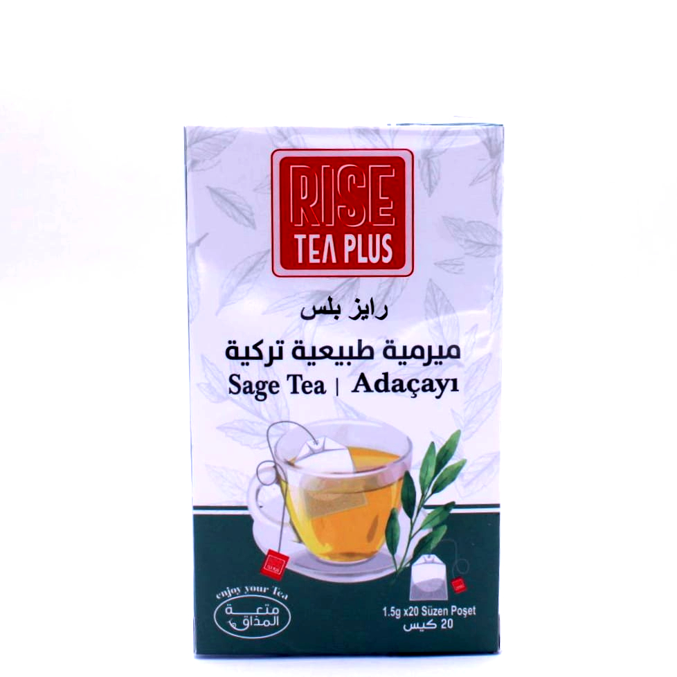 شاي رايز ميرمية تركي | 20 كيسشاي رايز بالميرمية التركية يقدم لك مشروباً عشبيّاً طبيعياً بنكهة مميزة ورائحة عطرية لطيفة، محضّر من أوراق الميرمية المختارة بعناية. خيار مثالي للاسترخاء والاستمتاع بمشروب دافئ في أي وقت من اليوم.